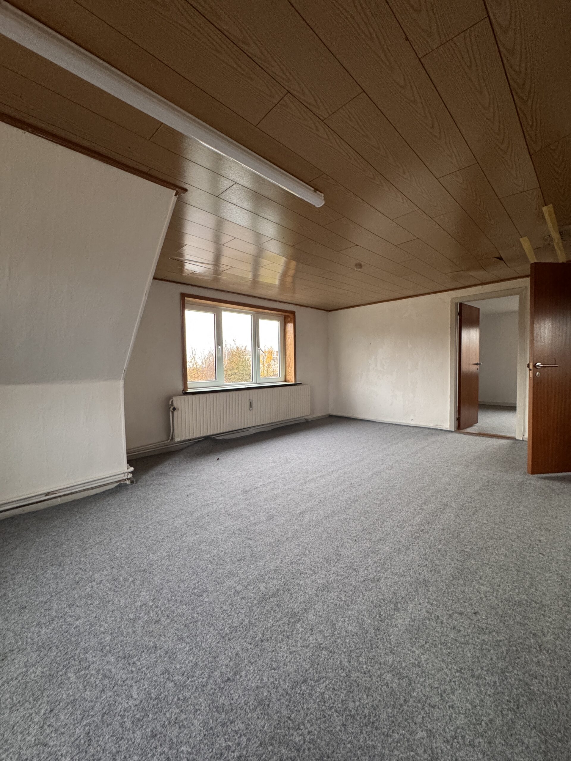 På førstesalen venter et repos, en stor stue, køkken, et værelse og et badeværelse.